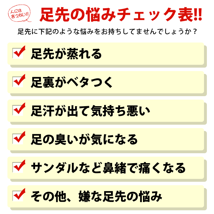 【こんな方におススメ】・立ち仕事の多い方・足が冷える方・足汗が気になる方・足の蒸れが嫌な方・慣れない下駄を履く方足の指と指をカバーしてくれるので、あの不快な足の悩みにも♪